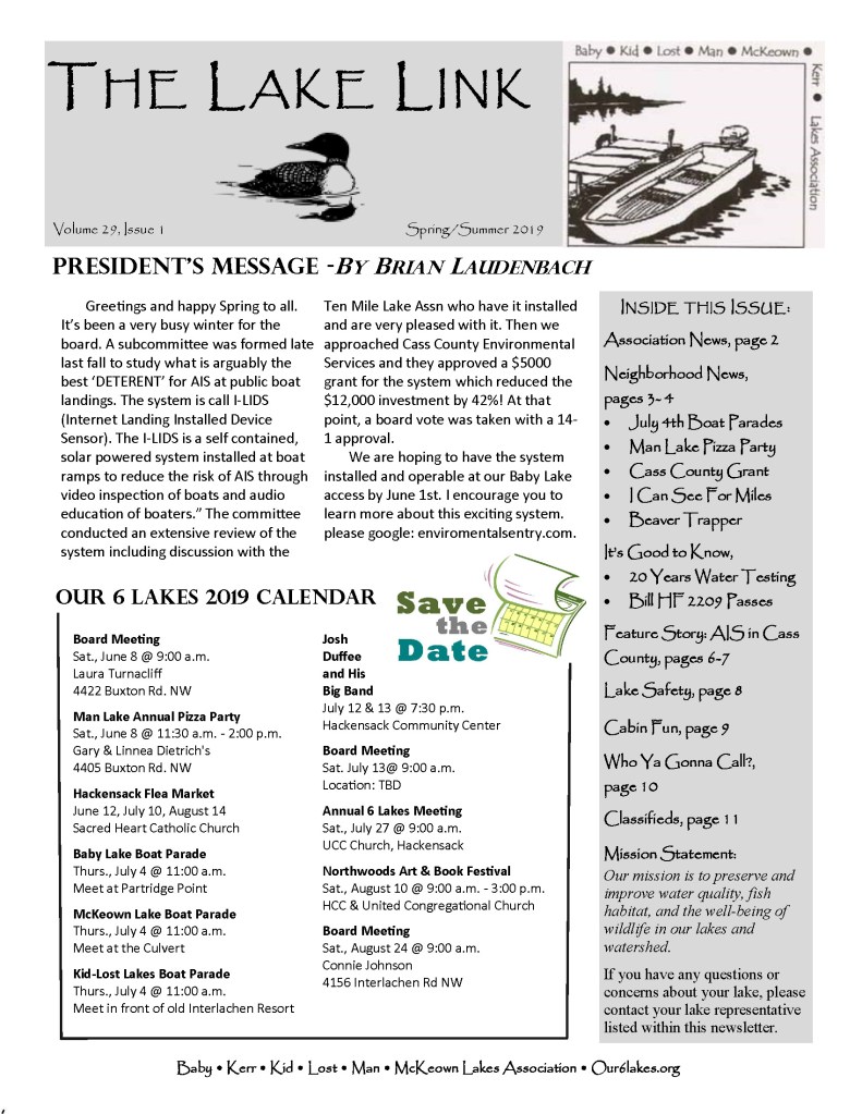 Read the latest Lake Link Newsletter and catch up with the latest happenings around Our6Lakes.